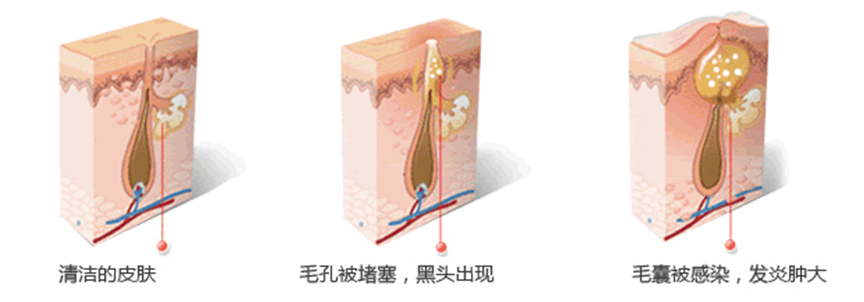 体内荷尔蒙分泌发生紊乱,造成皮脂腺分泌过多的油脂,油脂容易粘灰尘堵塞毛孔导致不畅:在细菌、螨虫的作用下,发炎、突起、变硬,继而成为痘痘,痘痘肌受内外各种因素感染发炎, 会造成进一步的恶化